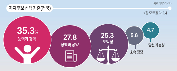 능력·경력 ‘최우선’… 정책·공약, 도덕성 순